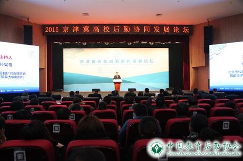 11月27日上午,“2015京津冀高校后勤協(xié)同發(fā)展論壇”在首都經(jīng)濟貿(mào)易大學紅廟校區(qū)會展中心舉辦,三地高校共同探討高校后勤工作協(xié)同發(fā)展與深度融合。本次論壇由北京市高校后勤研究會、天津市高校后勤協(xié)會、河北省高校后勤管理分會聯(lián)合主辦。來自京津冀三地105所高校的主管校長,后勤部門主要負責人和相關(guān)人員,以及部分專家學者參加了本次論壇。受邀出席論壇的領(lǐng)導有:中國城市報總編輯解樹江,新華社參考消息新媒體部主任徐光偉,中國教育后勤協(xié)會副會長兼秘書長黎玖高,北京高等教育學會秘書長時龍等。北京市高校后勤管理研究會理事長、首經(jīng)貿(mào)副校長孫昊哲主持論壇。