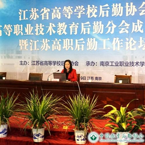 2015年12月19日上午,江蘇省高等學(xué)校后勤協(xié)會(huì)高職后勤分會(huì)成立大會(huì)暨江蘇高職后勤工作論壇在南京工業(yè)職業(yè)技術(shù)學(xué)院順利召開。省高校后勤協(xié)會(huì)會(huì)長(zhǎng)、東南大學(xué)副校長(zhǎng)黃大衛(wèi)、省教育廳安穩(wěn)處處長(zhǎng)焦偉、南京工業(yè)職業(yè)技術(shù)學(xué)院院長(zhǎng)孫愛武、省高校后勤協(xié)會(huì)副會(huì)長(zhǎng)兼秘書長(zhǎng)黃在宇、省高校后勤協(xié)會(huì)副會(huì)長(zhǎng)、南京工業(yè)職業(yè)技術(shù)學(xué)院副院長(zhǎng)朱建國(guó)、省高校后勤協(xié)會(huì)副會(huì)長(zhǎng)、常州工程職業(yè)技術(shù)學(xué)院副院長(zhǎng)潘玉琴、省高校后勤協(xié)會(huì)副會(huì)長(zhǎng)、江蘇工程職業(yè)技術(shù)學(xué)院副院長(zhǎng)錢國(guó)軍、省高校后勤協(xié)會(huì)副會(huì)長(zhǎng)、江蘇建筑職業(yè)技術(shù)學(xué)院副院長(zhǎng)梁惠及全省高職院校分管后勤工作的領(lǐng)導(dǎo)、后勤部門負(fù)責(zé)人共110多人出席會(huì)議。