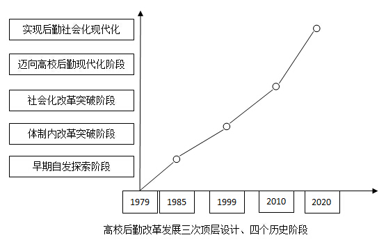1985年5月,《中共中央關(guān)于教育體制改革的決定》指明高校后勤“改革的方向是實行社會化”。1999年6月,《中共中央國務(wù)院關(guān)于深化教育改革全面推進素質(zhì)教育的決定》決定“要擴大高等教育規(guī)模”,之后國務(wù)院辦公廳連續(xù)四年召開全國高校后勤社會化改革推進會。2010年7月,中共中央國務(wù)院頒發(fā)《國家教育中長期改革發(fā)展規(guī)劃綱要(2010-2020年)》并確定“到2020年,基本實現(xiàn)教育現(xiàn)代化”的戰(zhàn)略目標(biāo),在完善中國特色現(xiàn)代大學(xué)制度方面重申“推進高校后勤社會化改革”。