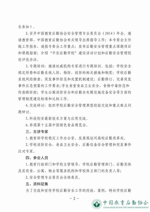 關(guān)于舉辦“中國(guó)教育后勤協(xié)會(huì)安全管理專業(yè)委員會(huì)2014年會(huì)暨后勤安全管理工作交流研討會(huì)”的通知