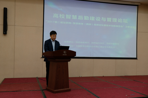 隨后,高校與企業(yè)“高峰論道”,圍繞會議議題作了9個精彩的主題報告。華中科技大學建安公司總經理羅波以快捷維修信息化為切入點,講解了華科大通過信息化建設打造了一種被稱為“2244”的后勤精神。杭州科技職業(yè)技術學院國有資產管理處副處長鄭龍介紹了杭州科技職業(yè)技術學院以“智慧校園”為依托,以“融通、融合、融入”為路徑,以“行知文化”為引領,以“業(yè)務應用”為支撐的后勤信息化建設的格局。陜西師范大學校園信息化工程技術研究院李含君分享了陜西師范大學后勤信息化建設的實踐與探索,為后勤信息化建設提出科學的理念及措施。西安歐亞學院后勤集團總經理助理伊遠盟進行了高校智慧后勤時代組織架構設計的講解,并闡述了歐亞學院后勤信息化發(fā)展以用戶體驗為核心和以信息化、大數(shù)據(jù)為方法的特征。西南石油大學后勤服務總公司校園管理中心副主任徐鵬飛分享了基于互聯(lián)網+的高校后勤校園管理信息化服務平臺,介紹了西南石油大學在校園管理信息化建設方面的成功經驗。來自西安優(yōu)圈研究院、北京恒致通創(chuàng)、上海俺來也、美的集團等知名企業(yè)的高管展現(xiàn)了移動生態(tài)圈、智慧公寓及通道系統(tǒng)、校園全生態(tài)鏈服務平臺、校園集控方案方面的先進理念和技術,為各高校的后勤信息化建設提供新思路、新手段。