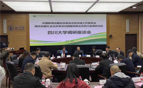 2019年11月25日-27日,中國教育后勤協(xié)會專家委員會主席、中國教育后勤協(xié)會新業(yè)態(tài)及快遞工作委員會主任、《校園服務(wù)新業(yè)態(tài):機(jī)遇與挑戰(zhàn)》課題組組長程天權(quán)帶領(lǐng)專家組赴四川省開展高校后勤社會化改革及校園服務(wù)新業(yè)態(tài)調(diào)研活動并主持召開《校園服務(wù)新業(yè)態(tài):機(jī)遇與挑戰(zhàn)》課題結(jié)題研討會。調(diào)研組先后前往四川大學(xué)、四川農(nóng)業(yè)大學(xué)、成都大學(xué)等高校進(jìn)行實地考察并召開座談會,主要圍繞新時代高校后勤社會化改革的頂層設(shè)計及配套政策需求,四川省校園服務(wù)新業(yè)態(tài)發(fā)展?fàn)顩r、高校后勤服務(wù)保障隊伍建設(shè)情況等開展深入的調(diào)查、交流與研討。