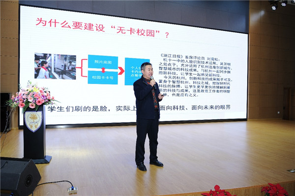 杭州第十一中學的張冠超副校長發(fā)言《校園無卡化、管理精細化——杭州第十一中學未來智慧校園的探索與實踐》