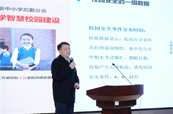 會上,北京高校后勤信息化推進工作組專家,首都師范大學智慧校園建設(shè)專家楊沅潼作專題報告《推進中小學教育智慧校園與信息后勤建設(shè)》。