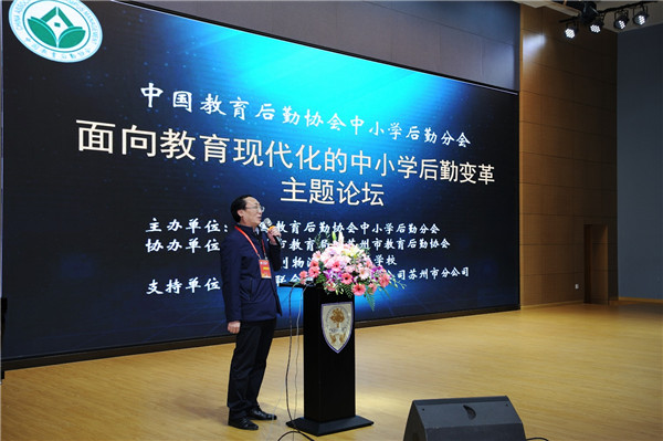 蘇州市教育局副局長華意剛為大會致辭。他指出,當前中小學建設(shè)發(fā)展進入一個新的歷史時期,黨的十九大和全國教育大會確立了建設(shè)社會主義現(xiàn)代化教育強國的宏偉目標,本次學術(shù)年會在蘇州召開,既為我們搭建了廣泛交流、強化合作的高端平臺,也提供了對接前沿、提升自我的難得機遇。本次年會以面向教育現(xiàn)代化的中小學后勤變革為主題,分析研判中小學后勤領(lǐng)域面臨的新形勢、新任務(wù),把教育現(xiàn)代化發(fā)展趨勢,探索新時期中小學后勤路徑模式,推進新時代中小學后勤創(chuàng)新發(fā)展,更好滿足人民對美好教育的需求作為目標。倡導(dǎo)后勤工作的堅定創(chuàng)新自信和使命擔當,這樣的主題立意高遠、催人奮進。