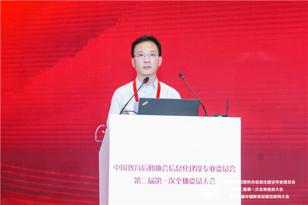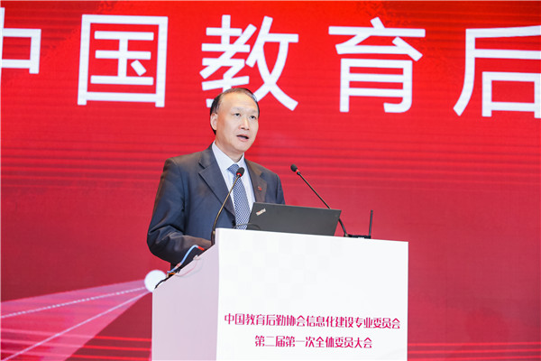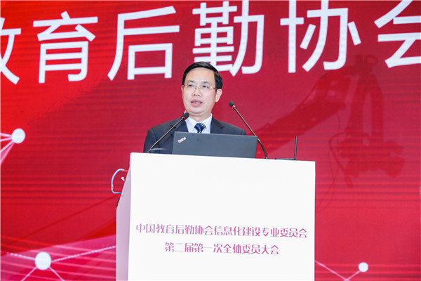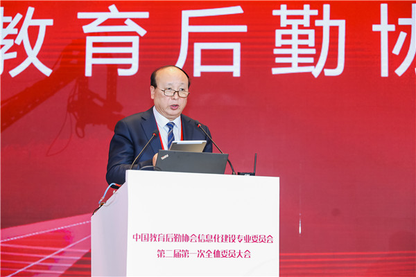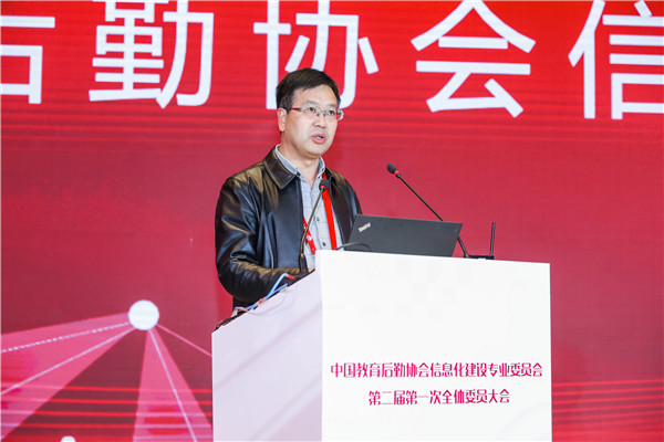 黎玖高首先代表中國教育后勤協(xié)會致辭。他充分肯定了第一屆信專會的工作,對信專會成立以來取得的成果表示祝賀。他分析了新形勢下我國教育現(xiàn)代化發(fā)展所面臨的挑戰(zhàn)和機遇,指出,我國正處在社會主義現(xiàn)代化建設(shè)的關(guān)鍵時期,信息技術(shù)的不斷發(fā)展,改革創(chuàng)新的不斷深入,都對我國的教育后勤事業(yè)提出了更加嚴(yán)格和全新的要求,同時,也為廣大教育后勤工作者提供了轉(zhuǎn)變觀念,創(chuàng)新發(fā)展的絕好機會。教育關(guān)系我國國計民生,關(guān)系到我國社會主義現(xiàn)代化建設(shè),教育事業(yè)要通過實現(xiàn)自身現(xiàn)代化為祖國現(xiàn)代化提供源源不竭的動力支撐,這離不開教育后勤現(xiàn)代化提供的重要支撐。如何促進前沿科技成果與后勤服務(wù)有機結(jié)合,推動后勤管理服務(wù)效率和質(zhì)量提升,為教育強國戰(zhàn)略實施提供強有力的支撐將是新一屆信專會全體委員以及廣大后勤同仁共同面對的重大課題。他同時也對新一屆信專會提出要求,希望新一屆信專會與時俱進,再接再厲,始終堅持和加強黨的領(lǐng)導(dǎo),認(rèn)真學(xué)習(xí)和深刻領(lǐng)會黨的十九屆四中全會關(guān)于堅持和完善共建共治共享社會治理制度的基本要求,把樹立科學(xué)理念和創(chuàng)新方法手段的工作指示運用到教育后勤信息化行業(yè)組織的工作當(dāng)中。充分認(rèn)識到中國教育后勤協(xié)會及其專委會作為全國性教育后勤行業(yè)性社會組織在維護行業(yè)穩(wěn)定、促進行業(yè)健康發(fā)展的重要職責(zé)和使命。充分發(fā)揚校園后勤信息化的科技創(chuàng)新優(yōu)勢,加強自身組織建設(shè),積極推進內(nèi)部治理體系和治理能力現(xiàn)代化發(fā)展;充分調(diào)動各委員單位的積極性,發(fā)揮各委員單位的重要作用,保障信專會服務(wù)能力的專業(yè)性和先進性;要確保新一屆信專會全體委員尤其是領(lǐng)導(dǎo)班子、常委會成員始終遵紀(jì)守法、遵守章程、恪守組織的性質(zhì)和宗旨、堅持用服務(wù)師生、服務(wù)教育、服務(wù)行業(yè)、促進教育事業(yè)發(fā)展的理念凝聚力量,推進高校后勤信息化建設(shè);同時也要正確履行職責(zé),充分把握時代發(fā)展潮流,在切實維護各委員單位利益的同時,規(guī)范委員行為,凝聚行業(yè)智慧與各方力量,完善信專會管理制度,健全信專會決策執(zhí)行機制,完善擔(dān)當(dāng)作為的激勵機制。希望新一屆信專會堅持更好服務(wù)師生,建設(shè)美好智慧校園的初心,保持對前沿科技的敏銳度,在校園信息化建設(shè)中不斷融入新理念、新思想、新技術(shù),攜手并肩,打造共商共建共享共贏的校園信息服務(wù)新格局,大力推進教育后勤信息化建設(shè)水平提升,為我國教育現(xiàn)代化提供最可靠的強力保障。