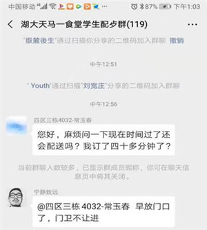 1、建立“防疫配送餐群”、采取盒飯?zhí)撞托问剑菏?nèi)高校食堂為減少留校學(xué)生聚集用餐,避免交叉感染,特在每個(gè)開餐食堂建立了食堂微信訂餐群,根據(jù)學(xué)生用餐需要,及時(shí)將飯菜送至學(xué)生宿舍值班室,方便學(xué)生用餐。