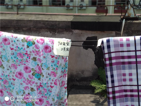 橘園二舍宿管員馬紅蕾每天晚上把學(xué)生們的訴求一條條記下來(lái),第二天一早巡查完各樓層安全,挨個(gè)兒把要曬的被子抱出來(lái),夾上寫(xiě)有寢室號(hào)和學(xué)生姓名或床號(hào)的小紙條,搭在宿舍外面的晾衣架上。“地方有限,每天最多曬個(gè)二三十床,”馬紅蕾說(shuō),“反正挨倒來(lái),只要給我說(shuō)了的,我肯定要辦到。”