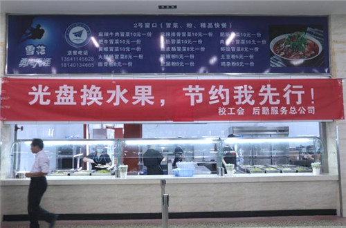 近日,成航后勤聯(lián)合校工會(huì)在學(xué)校食堂開(kāi)展了“光盤(pán)換水果,節(jié)約我先行”主題活動(dòng),希望用正向激勵(lì)來(lái)鼓勵(lì)師生厲行節(jié)約。食堂每天提供發(fā)放水果1800斤供學(xué)生換取,師生只要把飯菜吃完、完成“光盤(pán)”,即可領(lǐng)取一個(gè)水果。師生們紛紛參與到“光盤(pán)”行動(dòng)中,拿到水果的那一刻,他們不止收獲了笑容,還踐行了自己曾許下的制止餐飲浪費(fèi)的承諾。